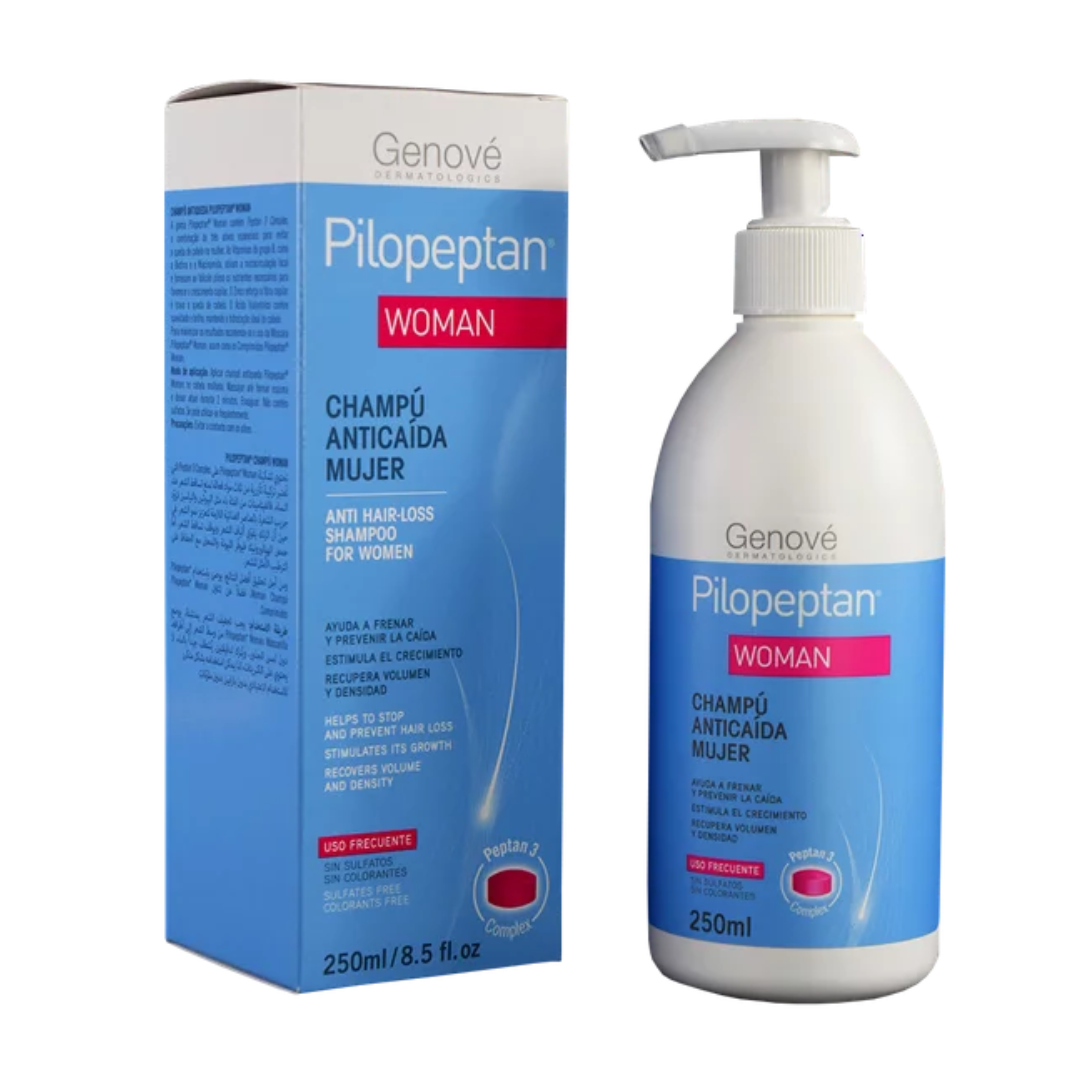 Genové Pilopeptan Woman Shampoo Anticaída está formulado específicamente para combatir la caída del cabello en mujeres. Su fórmula avanzada fortalece el cabello desde la raíz, previniendo la caída y estimulando el crecimiento de un cabello más fuerte y saludable.